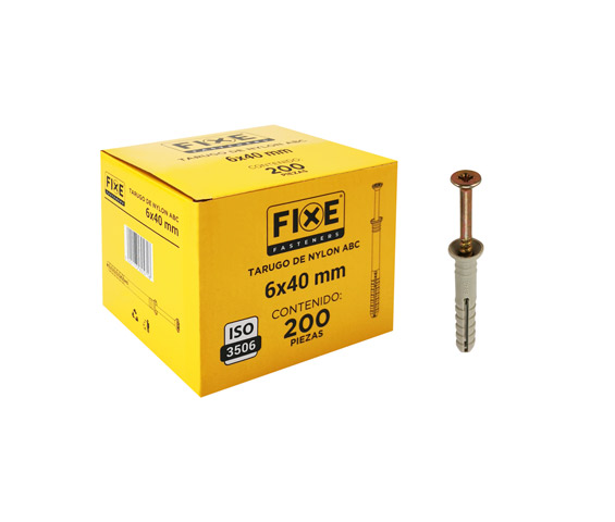TARUGO DE NYLON ABC FIXE ( 200 UNIDADES ) 6 X 40 MM.
